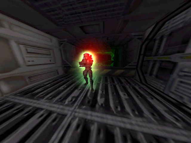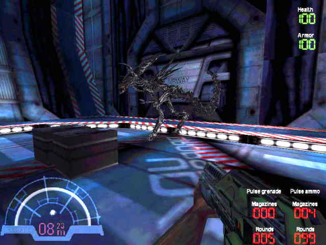 Takže včas přepněte vypínač nad schody a zmizte vraty po levé straně. Ale ještě nemáte vyhráno. Vzápětí narazíte na vetřelce "s velkou hlavou" (nic nového, ale pro vojáka to nejsou dvakrát příjemní společníci). Když se probojujete na horní palubu, aktivujte výtah, tím utečete.
