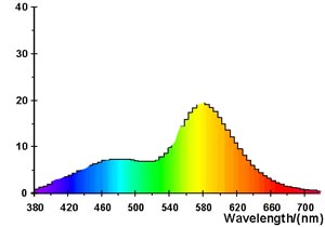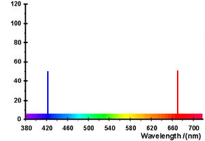 S barvou mají lidé kvůli digitálnímu vyjádření mylnou představu, že barva se skládá z RGB složek. Běžné denní světlo je ve skutečnosti široké spektrum kmitočtů, dalo by se říct že spojité (spektrální čáry jsou úzké a husté). To, co považujeme za denní bílé světlo, vypadá asi takhle (sluneční světlo obsahuje i UV a IR složky a další kmitočty daleko od viditelné části):