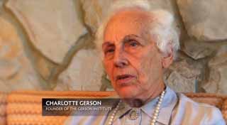 Charlotte Gerson: "Normálně má lidské tělo velkou obranyschopnost. Takže dostat rakovinu je nemožné. Lidské tělo má tak mocnou ochranu, že zdravé lidské tělo nemůže a nedostane rakovinu nebo jakoukoli jinou chronickou nemoc ze stejného důvodu. Nejenom to. S normální zdravou a bohatou stravou můžete tyto nemoci zvrátit. A to je to, co děláme."