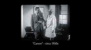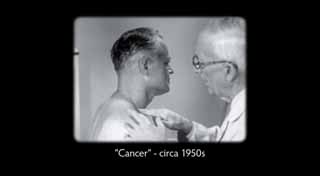 Z roku 1950: "My doktoři vylepšujeme naše techniky. Nikdo není v boji proti rakovině sám. Vědci nachází stále víc a víc skutečností. My rakovinu přemůžeme!"