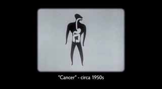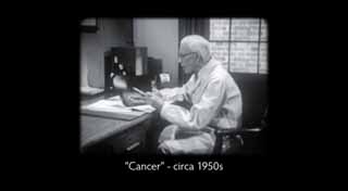 Z roku 1950: "Rakovina je nejsmrtelnější a nejzáludnější nepřítel člověka. Když se objeví rakovinové buňky, záhy začnou tvořit tkáň, která žije na úkor celého těla. Tato tkáň se zvětšuje a bere živiny ostatním buňkám, tkáním nebo orgánům."