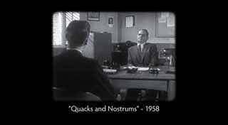 Z roku 1958: "- Rád bych se dozvěděl něco o informacích o zdraví, které se dozvídáme z reklam." "- Tomu my říkáme komerční informace o zdraví. Je to velký business. Miliony dolarů se utrácí za propagaci zdravotních produktů. Všechny typy prášků a jiných léků na všechny nemoci a bolesti. Víte, občas může být reklama zavádějící."