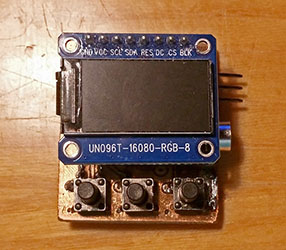 Při konstrukci je potřeba použít rezistory s přesností 1%, jinak může docházet k nesprávné detekci stisků tlačítek. Jas OLED displeje je ponechán na nízké úrovni, aby se minimalizovala spotřeba baterky. Aktuální napětí baterie CR2032 se zobrazí při startu většiny programů. Měření se provádí s využitím interní reference procesoru, a proto se zobrazený údaj může lišit až o 10%, a je nutné ho tedy brát jen jako orientační. U displeje pozor na rozmístění pinů - vyskytují se obvykle dvě verze, s pořadím pinů VCC-GND-SCL-SDA nebo GND-VDD-SCL-SDA. Na plošném spoji jsou připraveny obě varianty (případně lze připojovat displej měnitelně přes pinovou lištu). Displej OLED je zde použit v obrácené poloze oproti ostatním konzolím - otočení obrazu je nadefinováno v inicializační sekvenci displeje.