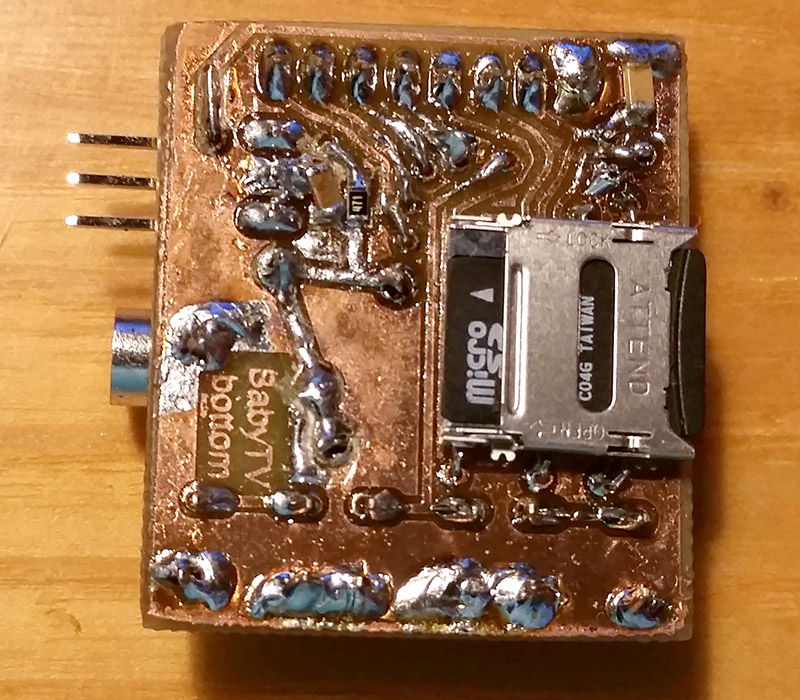 Několik ukázkových videí naleznete v knihovně ve složce ch32\DEVICE\BabyTV\samples. Potřebujete-li procesor opakovaně přeprogramovat, odpojte ho od napětí, připojte zpět a začněte do 3 sekund programovat, jinak se po té době odpojí programovací pin. Nebo vyjměte SD kartu, procesor po zapnutí napájení zůstane v programovatelném módu.