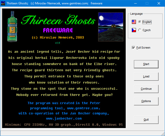 "Czech" or "English", load a saved game and