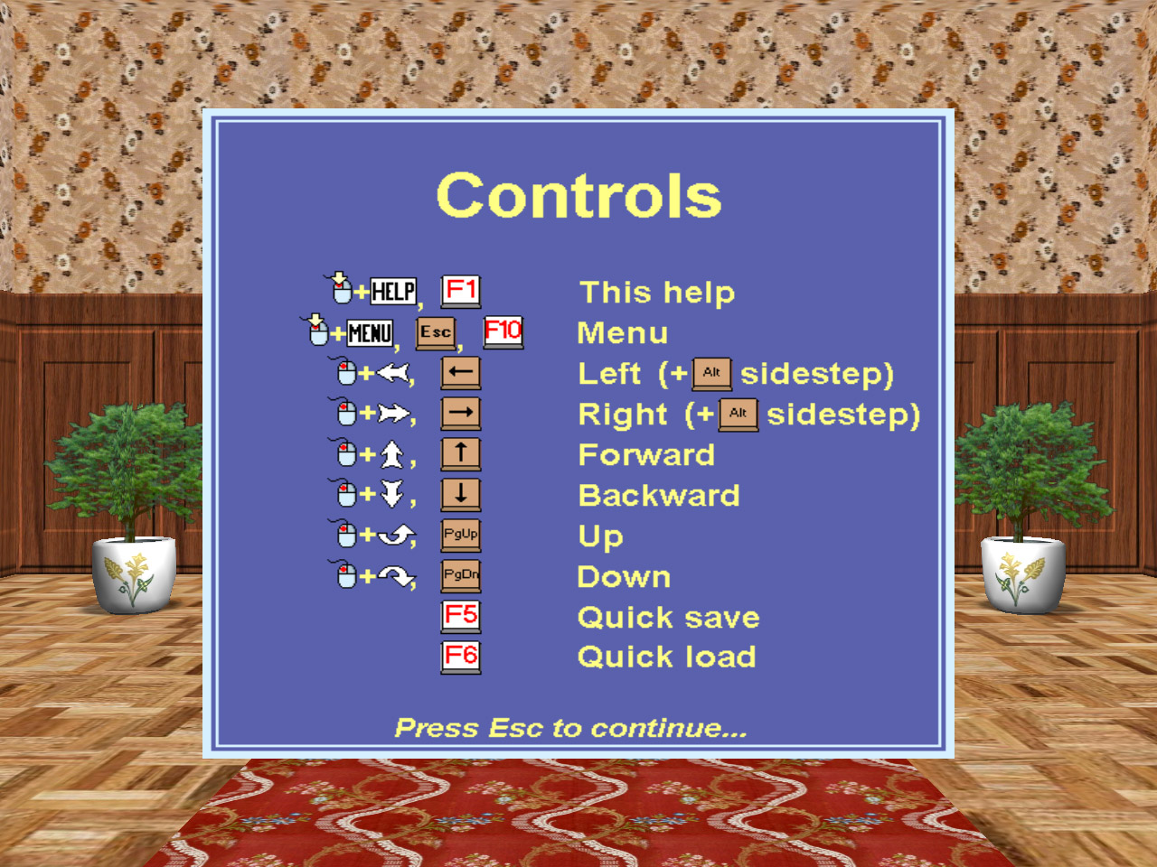 - arrow keys ... move around the room