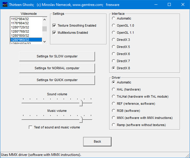 windowed or full-screen mode, in different video modes and with