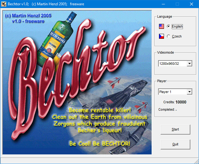 The Bechtor game was inspired by the excellent classic DOS game Raptor, and like it, Bechtor aims for high gameplay and action. Unlike Raptor, however, with 3D graphics. How successful the original intent was can be seen from the fact that Bechtor won 1st place in the 2005 Becherovka Game competition, action game category. Bechtor was created in the programming tool Peter. We created the game together with Martin Henzl. He created the 3D models, I created the programming code. The game contains 470 textures, 100 3D models, 19 sounds and was developed for 2 months.
