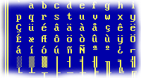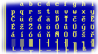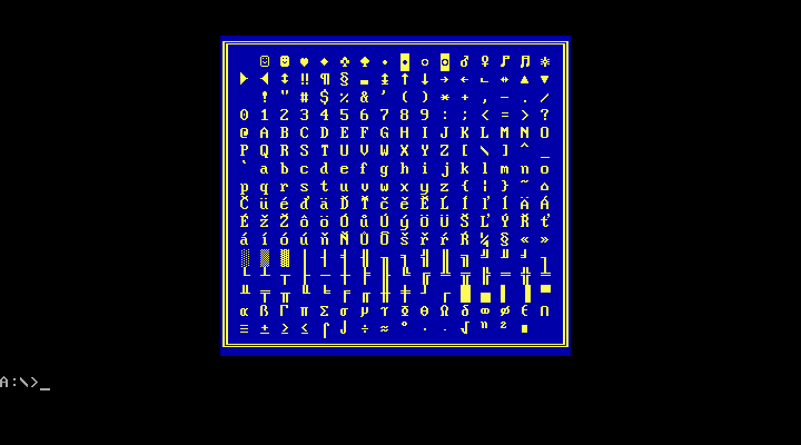 ASCII - zobrazení tabulky znaků. Klávesou Scroll Lock lze přepínat (displej i klávesnici) mezi kódy IBM (anglicky) nebo KEYBCS2 (čeština Kamenických). V grafických režimech je nutné nové spuštění programu, aby byla změna kódu znaků patrná.