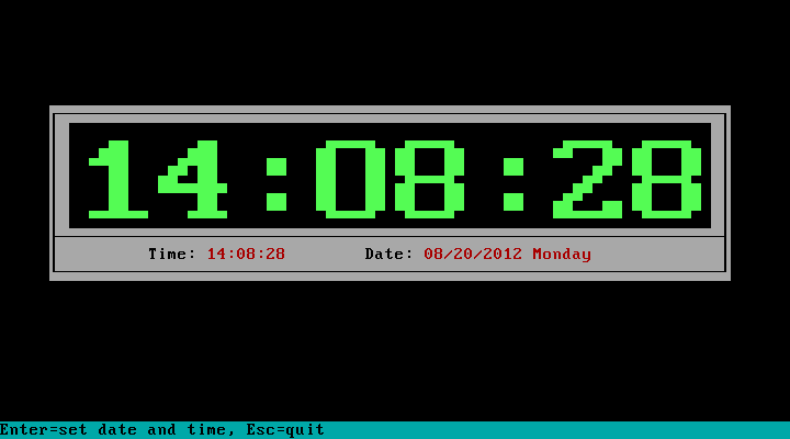 CLOCK - hodiny. Zobrazí aktuální datum a čas. Datum a čas je možné změnit. Upozornění - při nastavení na příliš vysoké datum (rok 2106 a výše) v reálném PC se systém Windows nemusí již nastartovat, je nutná oprava data do běžných mezí.