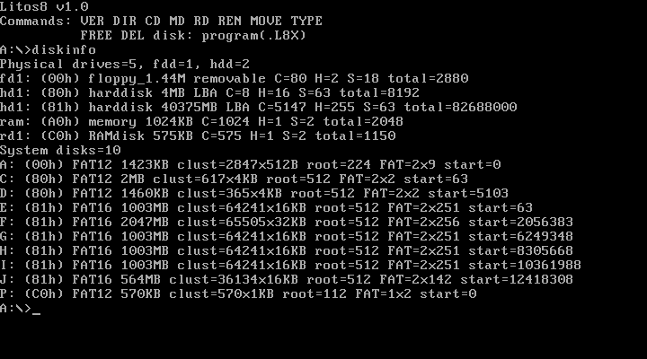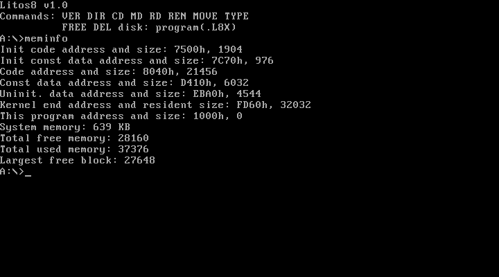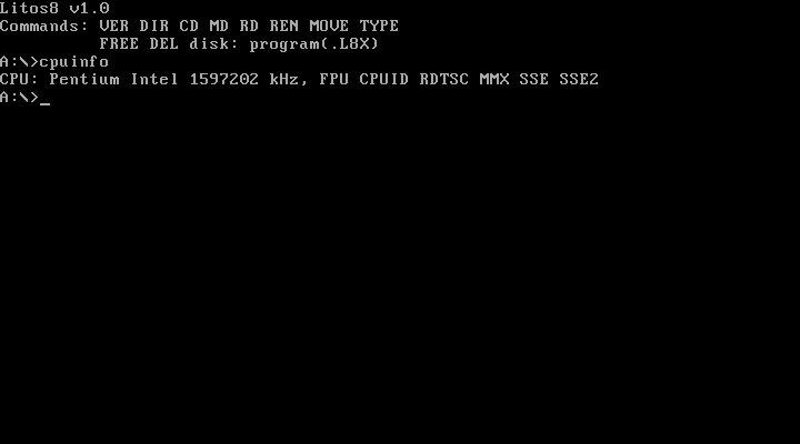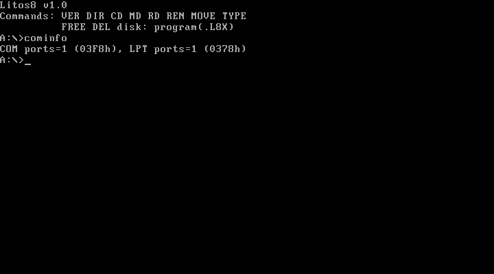 Litos8 se ovládá přes příkazový řádek. K dispozici je několik vestavěných příkazů: