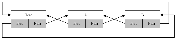 K tomuto účelu používáme "dvojitě spojený seznam". Každý prvek opatříme dvěma ukazateli - jeden ukazuje na následující prvek v seznamu, druhý na předcházející. Řetězec ukazatelů je zacyklen do kruhu. To nám umožní snadno procházet seznam prvků. Jako zarážka pro ukončení procházení seznamem nám slouží dosažení adresy výchozího prvku. Výchozím prvkem může být buď hlavička seznamu (která není platným prvkem seznamu) nebo jeden z prvků seznamu (seznam bez hlavičky).
