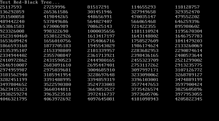 Test red-black tree (sorted list of random numbers)