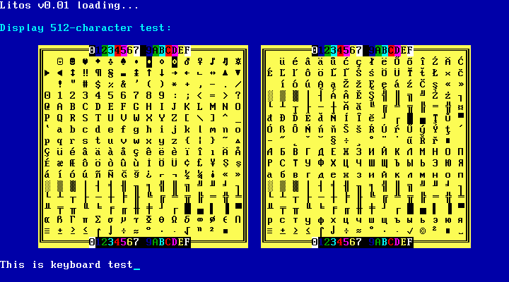 Keyboard and 512-character display test