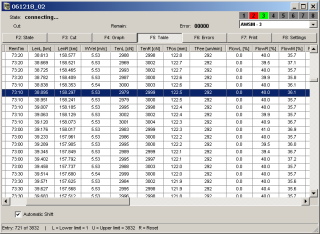- Zobrazení tabulky řezu.