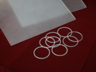 a krystalové desky a kroužky. Desky 240 x 240 x 2,32