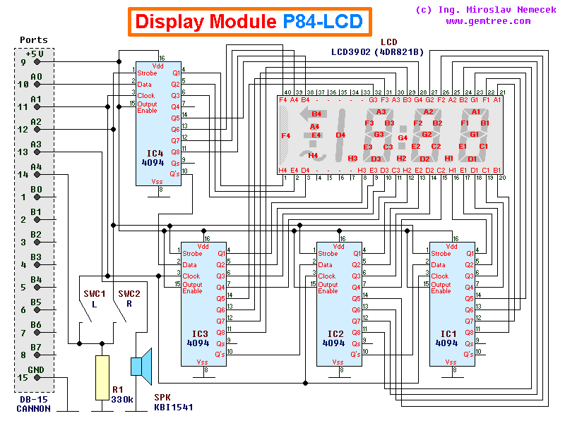 Elektrody LCD displeje jsou připojeny na výstupy 4 posuvných