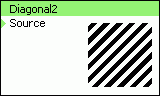 Filtr "Diagonal2" otočí obraz o 45° ve směru hodinových ručiček. Pro zachování bezešvosti textur je před rotací zajištěno dlaždicové opakování obrazu a obraz je zmenšen v měřítku 1/sqrt(2). Signál není ohraničen.