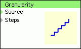 Filtr "Granularity" odstupňuje schodovitě úrovně barevných kanálů RGB obrazu podle vztahu Yout = floor(Yin*Steps)/Steps. Alfa složka obrazu (průhlednost) není filtrem ovlivněna. Signál není ohraničen.