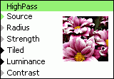 Filtr "HighPass" je horní propust. Funguje tak, že od obrazu odečítá nízké frekvence, tedy obraz s Gaussovým rozostřením. Filtr si uchovává vstupní obraz v cache paměti 512x512 bodů a z této paměti poté provádí Gaussovo rozostření, které použije k odstranění nízkých frekvencí. Následkem toho může filtr renderování zpomalit a to obzvláště na začátku renderování (např. při zobrazení náhledu), kdy si načítá vstupní obraz.