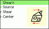 Shear - stupeň zešikmení. Pro hodnotu 0.5 se neprovede žádné zešikmení. Při hodnotě 1 se levý horní roh dostane do středu horního okraje obrazu, při hodnotě 0 se tam dostane pravý horní roh (platí pro Center = 0.5). Vstup není ohraničen.