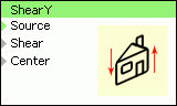 Shear - stupeň zešikmení. Pro hodnotu 0.5 se neprovede žádné zešikmení. Při hodnotě 1 se levý horní roh dostane do středu levého okraje obrazu, při hodnotě 0 se tam dostane levý dolní roh (platí pro Center = 0.5). Vstup není ohraničen.