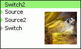 Filtr "Switch2" umožňuje plynulý přechod mezi 2 obrazovými vstupy v závislosti na přepínacím signálu.