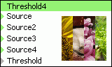 Source4 - obrazový vstup 4. Vstup není ohraničen. Na výstup je tento signál přenesen při řídicích úrovních Threshold v rozsahu 0.75..1.
