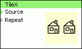 Filtr "TileX" zajistí dlaždicové opakování obrazu v horizontálním směru. Signál není ohraničen. Opakování obrazu znamená opakování zmenšeného obrazu ve viditelné části obrazu (tj. souřadnice v rozsahu 0..1). Obraz se přitom opakuje za hranicemi viditelné části i při nejmenším počtu opakování 1x.
