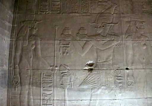 Na stěně předpokoje svatyně je vyobrazen Ptolemaios V., který předává dary bohyni Isis. Zlaté stěny, které byly pokryty tepaným zlatem, již ztratily svoji původní barvu. Ve středu chrámu se nacházela Svatyně bohyně Isis. Stál v ní žulový oltář se zlatou sochou bohyně. Tato socha bývala při procesích a rituálech převážena ve zlaté lodi. Isis, egyptská panenská matka, která porodila Hóra po neposkvrněném početí, má na hlavě trůn. Je to symbolický trůn, jenž představuje nejvyšší čakru, v níž lidské vědomí po jejím dosažení setrvává věčně.
