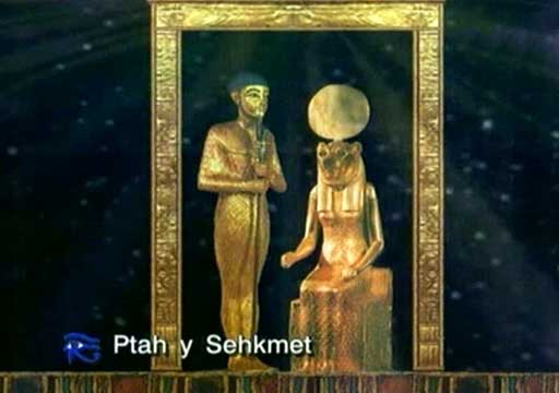 Na nejvyšším postu v božském a uspořádaném světě stál Atum, jediný Bůh, absolutní moudrost v ještě nemanifestovaném vesmíru. Jeho ženskou částí byla Naunet, panenská substance, homogenní hmota, plodová voda, nekonečná láska. Atum a Naunet, původně odpočívající pár, zaktivoval svoji božskou vůli a proměnil se v Ptaha a Sekhmet, ale dál zůstal tím samým a jediným Bohem. Nyní ovšem získal jiné vlastnosti, protože jeho vlastní vůle ho uvedla do pohybu. Ptah, mužská část jediného Boha, šířil kreativní informace, a Sekhmet, ženská část, se projevila jako substance lásky a vytvořila světlo, energii a zářící substanci pohybu. Ptah a Sekhmet představují množící sílu všeho, co bylo stvořeno.