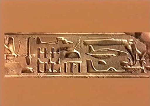 Jeden z nápisů obsahuje zvláštní symboly, které zaujaly vědce svojí podobností s helikoptérami a létajícími předměty. Tisíce příběhů vysvětlují jejich význam. Někdo tvrdí, že do těchto hieroglyfů ukryli Egypťané svou zprávu pro příští generace. Jakmile lidé, vstupující do chrámu, rozluští význam těchto symbolů, začne věk Vodnáře a lidstvo se dostane ke konci dalšího cyklu a do stavu mimořádných změn.