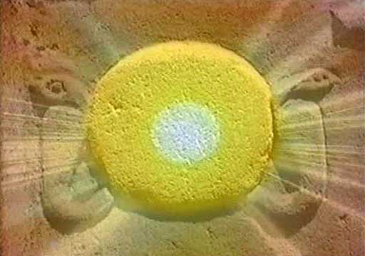 Muž se slunečním kotoučem nad hlavou symbolizuje moudrost, která z něj vyzařuje a vysoký stupeň rozvoje jeho mysli.