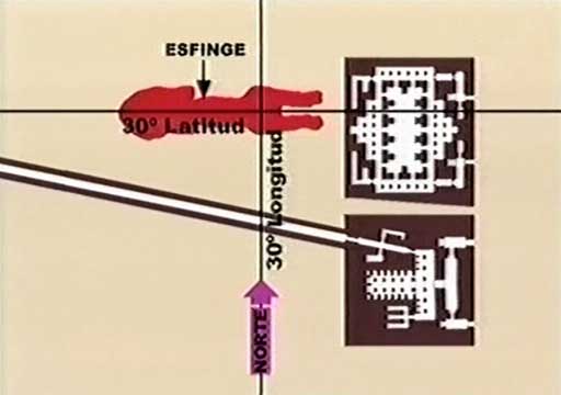 Její tělo lvice leží paralelně s rovníkem na 30° severní šířky a téměř přesně na 30° východní délky. 30° šířky - to znamená, že Sfinga leží na jednom z diamagnetických bodů Země.
