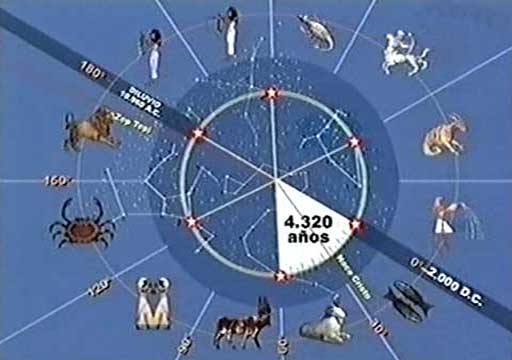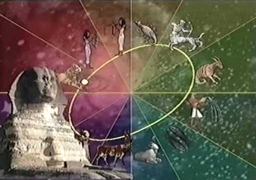 Sluneční soustava obíhá kolem centra galaxie po imaginární linii, nazývané ekliptika. Každý oběh trvá 25 920 let, což představuje věčný cyklus, kteří egyptští kněží nazvali kosmický rok. To oni rozdělili tento kruh na 12 sektorů, každý zaujímající 30°. Slunci trvá 2 160 let, než projde jedním z těchto dílů. Celý kruh tvoří 12 souhvězdí, každé z nich nese nějaké zvířecí jméno. Proto se tento kruh nazývá zvěrokruh nebo zodiak. Během této cesty získává planeta Země různé energie od těchto dvanácti znamení zvěrokruhu nebo od souhvězdí, která vládnou nad lidským osudem v každé reinkarnaci a která určují situace, které musí člověk zažít, aby se poučil.