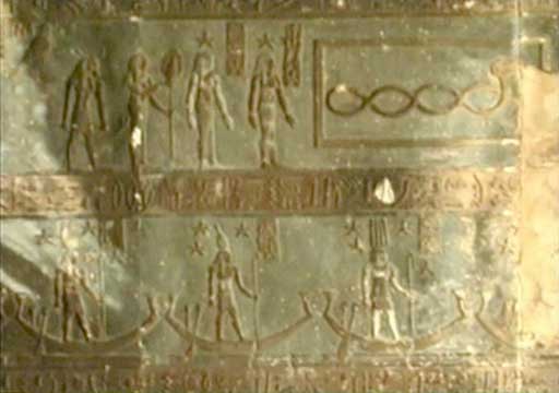 Na strop této haly vytesali poslední kněží v Dendeře astronomické tabulky. Pracovalo na nich několik generací kněží, kteří chtěli zajistit, aby jejich znalosti nikdy nezmizely. Najdeme tu všechna souhvězdí zvěrokruhu, plující v symbolických bárkách s obrázky bohyně Nut, symbolu nebes, která každý večer pozřela slunce a ráno ho zase porodila.
