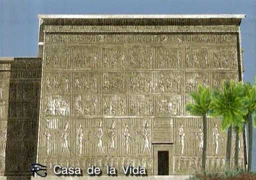 V této hale, zvané Hala života, pracovali písaři na svatých papyrech, teologických pojednáních, rituálních modlitbách a tabulkách s astronomickými záznamy. Umění, teologii, magii, astronomii a medicíně vyučovali učitelé Školy mystérií právě v této hale. Zde zaznamenávali pravidelné změny polárních souhvězdí a sledovali precesi rovnodenností.