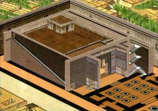Z vnější světelné strany až k temné svatyni se podlahy chrámů postupně zvyšovaly, aby kněží při ceremoniích mohli pozorovat část oblohy přes hlavy svých žáků. Svatyně je nezávislou místností uvnitř chrámu, obklopenou dalšími prostory. Slunce sem dopadá světlíky a ozařuje původně barevné stěny.