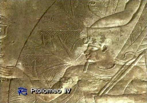 Zde faraón Ptolemaios IV., obklopený platanem, stromem života, dalším symbolem bohyně Hathor, dostává od Hóra palmu se svým osudem, s lekcemi, které se ve svých reinkarnacích musí naučit, aby dosáhl osvícení. Na druhé straně stojí Nekhbet, jež mu předává jeho bezprostřední osud, ten, který zažije v tomto životě jako faraón. Egyptská civilizace byla založena na reinkarnaci jako procesu získání a ověření vesmírných pravd. Duše člověka se vtěluje, aby se poučila z důsledků svých rozhodnutí a pomaloučku se proměňovala ve flexibilní a moudrou bytost, až se nemá čemu více učit a jeho duše je osvícena.