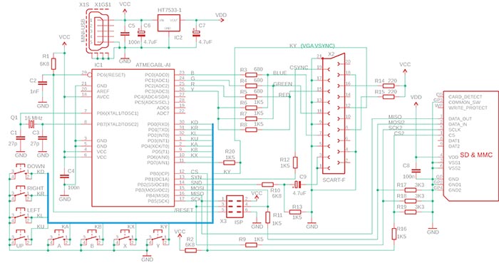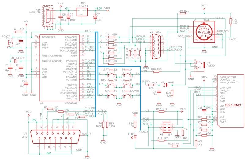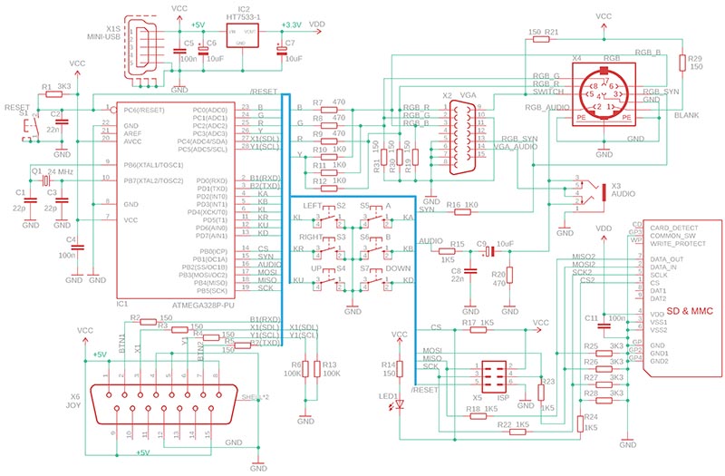 Chcete-li konstrukci minimalizovat, vypusťte konektor X4 RGB, odpory R19, R30, R31, konektor portů X6 JOY s odpory R2-R6, R13 a kondenzátor C8 (filtr zvuku).