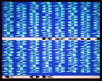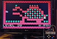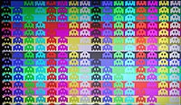 (9) MODE_TILE7 - barevné dlaždice 7x8 pixelů. Paměťové nároky jsou stejné jako u následujícího režimu 8x8 pixelů (1 dlaždice zabere 32 bajtů), výhodou je o něco větší počet sprajtů na řádek.