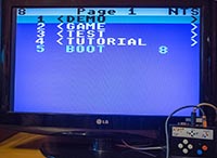 Po naprogramování by měla začít blikat indikační LED, indikující zavádění boot loaderu z SD karty. Po připojení displeje by měl být vidět obraz zavaděče programů. Není-li obraz vidět, zkuste zapnout správný typ displeje pomocí tlačítek B+šipka (při prvním startu implicitně zvolen VGA displej).