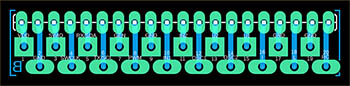 14 FFT Spectrum Analyzer - The spectrum analyzer is used to display the spectrum of the analog signal fed to input "10 IN1". The spectrum is displayed in 16 bands with logarithmic frequency distribution in the range of 16 Hz to 16 kHz. Second-order IIR biquad filters with Q=10 are used for signal analysis. The ADC sampling frequency is 44100 Hz. The display refresh rate is 22 FPS. The displayed graphs use attack and decay filtering (fast rise and slow fall).
