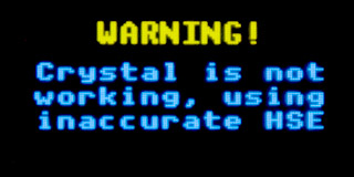 Another manifestation of incorrect behavior (e.g., after incorrectly connecting 5V to the input with a 3.3V power supply) may be that the crystal does not start. In this case, PidiMet will display a warning that the crystal is not working when it starts up. PidiMet works even without a crystal, using the internal 24 MHz HSI clock source, but the accuracy of time measurements (including capacitor and coil measurements) will decrease by 1%. In this case, turning PidiMet off and on again will help. The same message will appear when PidiMet is turned on if the crystal is not installed at all. PidiMet can still be used, but it will have lower accuracy.