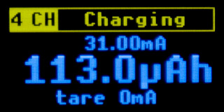 Taring can also be used to memorize the reference current. If you press HOLD during measurement, the current measured value will be used as a reference value and the next current will be displayed relative to this reference current level. This may also display a negative current value - but be careful not to confuse this with a negative input current, it is only a correction of the displayed data.