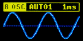 A short press of the HOLD button stops the display from redrawing. This is particularly useful in the case of an unstable signal, making it easier to examine the displayed waveform. Holding down the HOLD button for at least 1/2 second switches to AUTO mode, i.e., automatic synchronization of the start of the curve. When automatic synchronization is turned off, only the most necessary short section of data is recorded and immediately displayed. This FREE mode is used for quick redrawing of the display. When automatic mode is turned on, a section of the signal 2x to 4x longer than the display is loaded. After the data is recorded, the recorded curve is searched. The steepest point is searched for (through a longer interval - integration with "prefix sum" is used), with preference given to the curve passing through the center (zero).