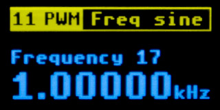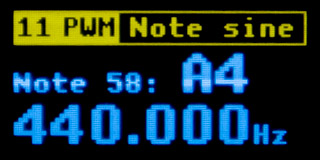 11 PWM Function Generator - The function generator generates analog signals at the "8 PWM" output. The SLOW and FAST buttons switch the frequency. The HOLD button switches both the frequency set and the signal shape - sine, triangle, and sawtooth. The first set, labeled "Frequency", is a set of frequencies with a decimal base: 1 Hz, 2 Hz, 3 Hz, ... 10 kHz, 15 kHz, 20 kHz, 30 kHz. The second frequency set, labeled "Note", generates frequencies in musical tones. Tones are generated in a range of 10 octaves, from C0 to B9. This corresponds to a frequency range of 16.3516 Hz to 15804.3 Hz.