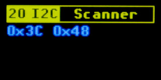 20 I2C Scanner - I2C address scanner. The I2C scanner is used to detect the addresses of devices connected to the I2C bus. The SDA signal of the I2C bus is connected to pin "5 RX/SDA", and the SCL signal of the I2C bus is connected to pin "6 TX/SCL". Communication via the I2C bus takes place in open collector mode, with a pull-up resistor of approximately 45 kOhm. The voltage corresponds to the selected supply voltage - be careful not to damage devices that only support 3.3V by connecting them to a 5V bus.
