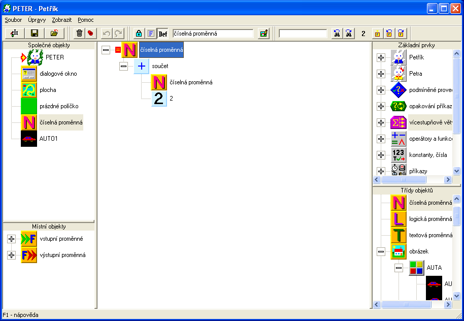 Gemtree Peter - installer Installation problems: When you try to uninstall Peter by standard way, Windows XP (or higher) may report an invalid application. In that case, use Peter's installer again to uninstall it (mini version is enough to do so, and manually delete the installation folder) or just manually delete installation folder of the Peter and the appropriate shortcuts. To install to Vista or higher, you may need to use the version without the installer (just unpack) or alternative installer from the community server Islandsoft. Peter 2.50 Full Installation (400 MB) - includes: Peter application, help files (Czech and English), about 160 sample programs, 2400 pictures, 1000 icons (items), 1500 sounds, 560 musics, 400 sprites, resources for generating sprites. Peter 2.50 Mini Installation (5 MB) - includes: Peter application, help files (Czech and English), sample programs Maze and Tutorial, sample library files. Peter 2.41 Lite Installation (5 MB) - the older version with limited features. It may be useful for younger or novice users because there are no unsafe functions (such as file and memory operations). Can be installed and used in conjunction with version 2.50, because it is installed into another folder. Files labels (aliases) are in Czech, English and German - depending on the selected language. When you running the sample programs, language depends on the language selected in the Peter application (if running) or on the system language. >>> For Windows 10 I recommend to add Peter 2.51 with modified helps (see following sections). <<< |