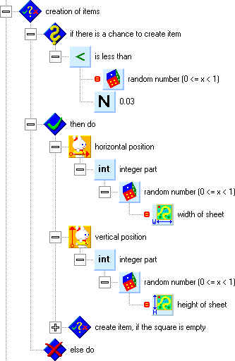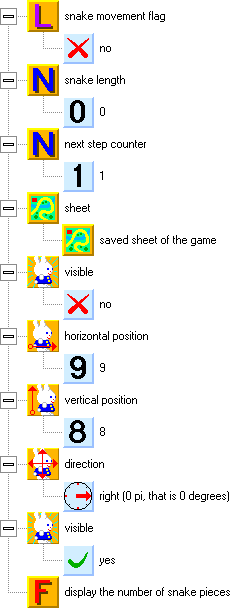 We will look at a new sheet property. Each square contains, apart from an item picture, five logical flags and three numeric values. A logical value can keep a yes/no state, which can be tested. In our program, we will use the first flag to signalize that there is a wall on the square. We wont have to evaluate the item on the square, we will just ask the flag: "Is there a wall on the square?" We can even use several variants of walls.